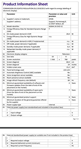 Specification: Dyon Sigma LED HD TV, 60cm / 24inch, Zwart